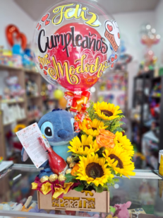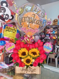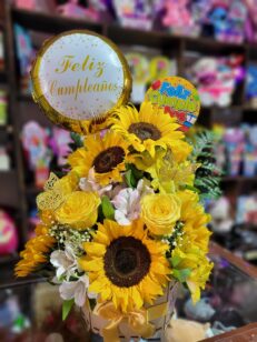 Puedes agregar Globos Metalizados, Globos Burbuja, Ferrero, Peluches, Llaveros a los bouquets dependiendo de tu presupuesto (en algunas fotos se encuentran ejemplos de como quedaria el bouquet) o simplemente otro girasol