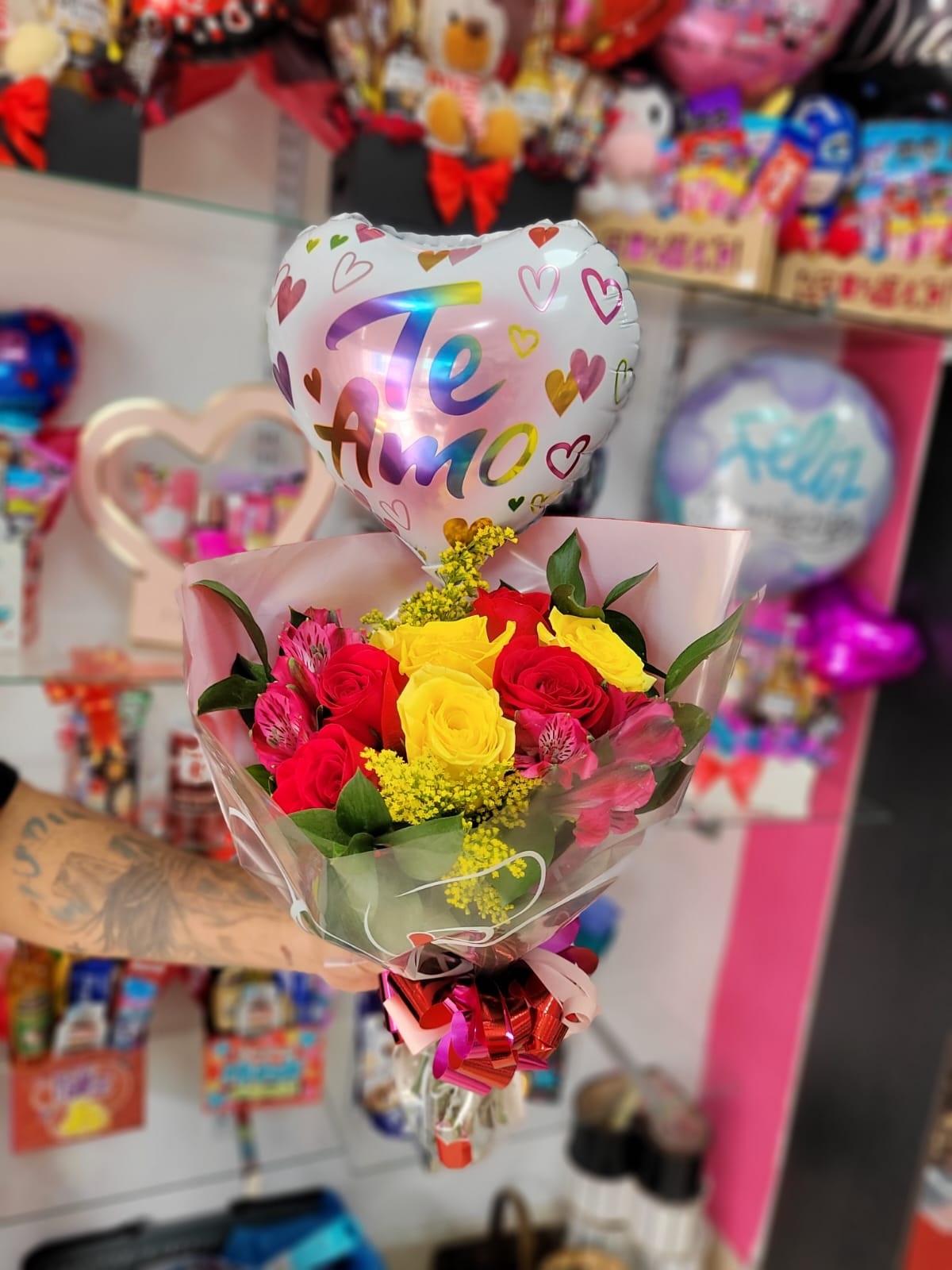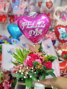 Arreglo floral con globo